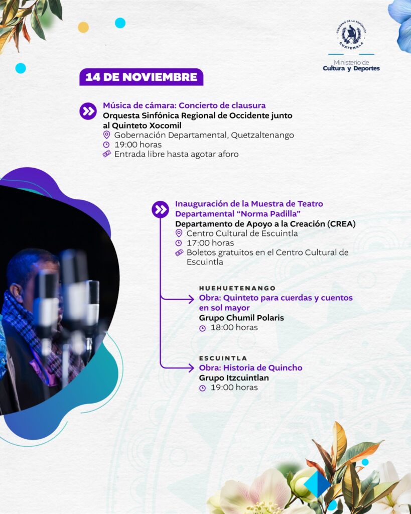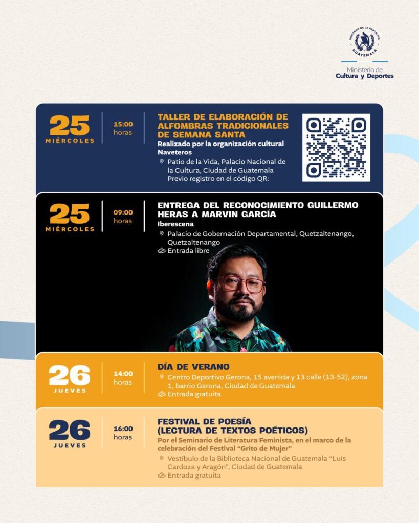El Ministerio de Cultura y Deportes desarrolla diversas actividades culturales y artísticas, te invitamos a que participes en cada una de ellas.