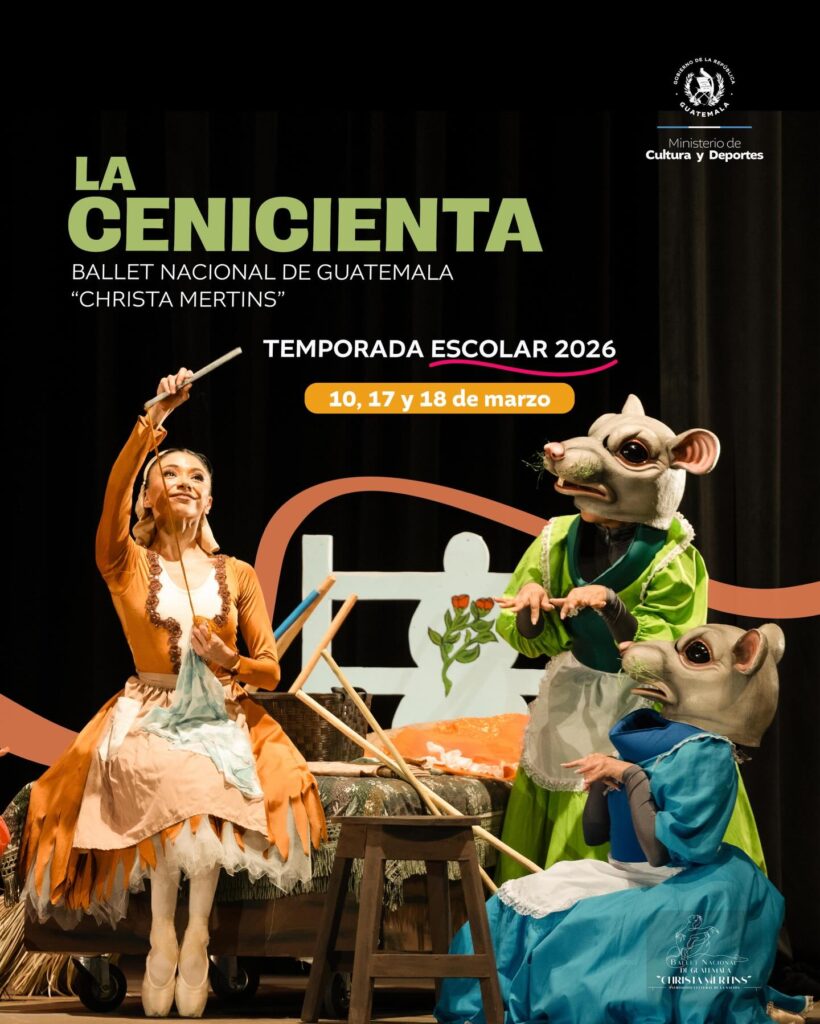 👑 El Ballet Nacional de Guatemala “Christa Mertins” invita a niñas, niños y familias a disfrutar de una entrañable historia llena de magia y danza, con la presentación de La Cenicienta, un clásico que despierta la imaginación y celebra los sueños.