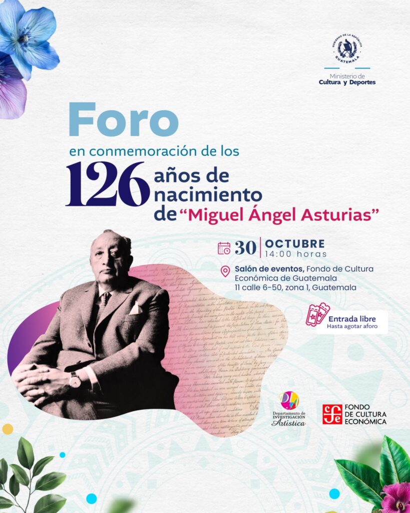 Te invitamos al foro en conmemoración del Premio Nobel Miguel Ángel Asturias, un espacio dedicado a explorar la vida y obra de este autor cuya palabra trascendió fronteras.